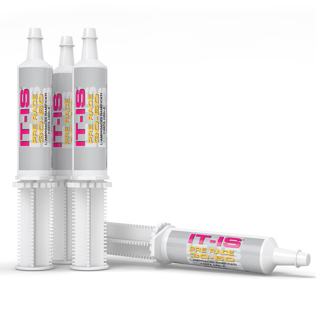 IT-IS Pre Race è un integratore per cavalli in pasta ad uso orale. Questa fornisce energia prontamente disponibile e migliora la prestazione agonistica del cavallo, ridicendo l’affaticamento. Inoltre riduce l’accumulo di acido lattico nella muscolatura e la frequenza cardiaca durante il lavoro. Tutto questo è dovuto dal miglioramento dell’efficienza metabolica della fibrocellula muscolare, cui consegue l’incremento delle potenzialità atletiche del cavallo. Inoltre assicura maggiore velocità, potenza e resistenza fisica durante l’allenamento quotidiano o una gara. Infine può essere somministrato dopo una competizione per favorire il recupero e la riparazione delle lesioni muscolari.