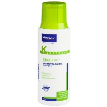 Virbac Sebolytic è un detergente per cani e gatti che rimuove scaglie croste e grasso in eccesso dalla cute. Inoltre aiuta a regolare la produzione di sebo, controllando l’odore della cute. E’ utile per migliorare la vitalità della cute in quando svolge un effetto antiadesivo contro microrganismi e stimola la difese naturali microbiche della cute.